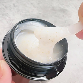 取出適量於手上後,在臉上均勻塗開讓金箔融化並完全吸收。(用量:約一顆櫻桃大)